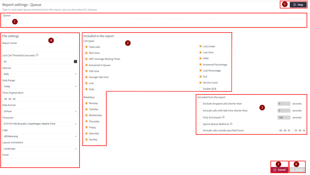 Select the specific settings for your Report selection, eg. only lost Calls or outbound calls